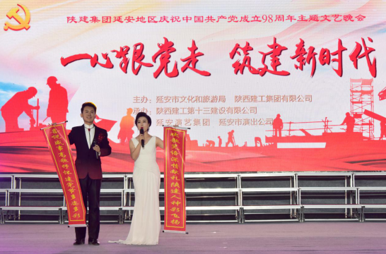 為紀(jì)念中國共產(chǎn)黨建黨98周年,謳歌黨的光輝歷程,展現(xiàn)陜建集團(tuán)形象、弘揚(yáng)陜建精神,堅(jiān)定初心、牢記使命,弘揚(yáng)時(shí)代主旋律,活躍職工文化生活,陶冶職工情操,增強(qiáng)延安各單位凝聚力,6月30日晚,由延安市文化和旅游局、陜建集團(tuán)主辦,陜建十三建公司承辦的陜建集團(tuán)延安地區(qū)慶祝中國共產(chǎn)黨建黨98周年主題文藝晚會在十三建公司清華附中項(xiàng)目部工地舉行。