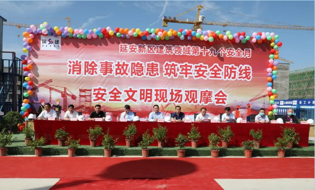 5月29日,由延安市新區(qū)住房和城市建設(shè)局主辦的第19個(gè)安全生產(chǎn)月宣誓暨“消除事故隱患 筑牢安全防線”安全文明現(xiàn)場(chǎng)觀摩會(huì)在陜建十三建公司清華大學(xué)附屬中學(xué)延安學(xué)校項(xiàng)目舉行。