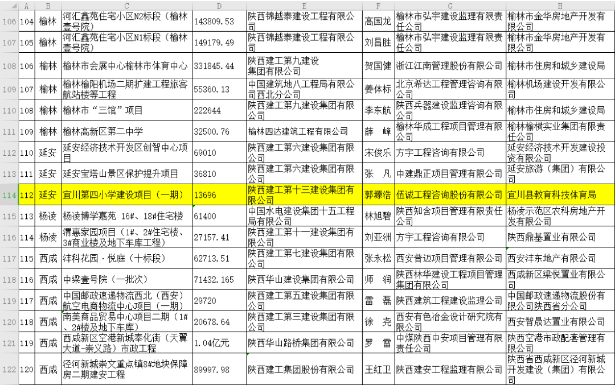 文明工地評選名單(黃色標(biāo)記為我司獲獎項目)