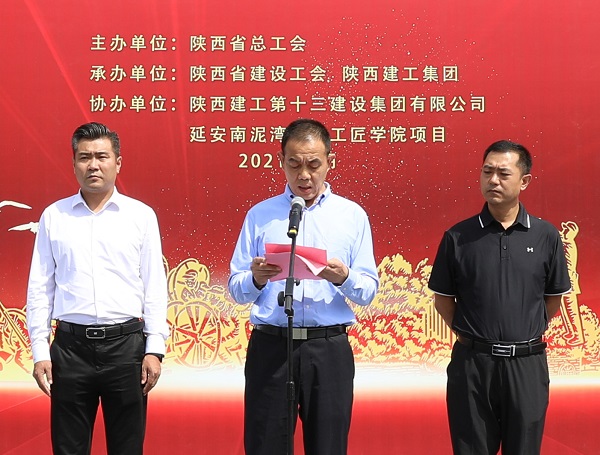 陜西建工集團黨委常委、副總經(jīng)理劉小強在致辭中表示陜建作為我省最大的國企建筑鐵軍,在省委、省政府的領導下,在70余年的發(fā)展長河中,建設了一大批國防、科教、文衛(wèi)、公共服務等重點項目,積極服務于陜西發(fā)展和國家建設,既有深厚的文化積淀,又有雄厚的綜合實力。有幸承建延安南泥灣勞模工匠學院這個重點項目,我們倍感榮幸,倍加珍惜。我們已將該項目列為十三建集團的“一號工程”,調集精兵強將,以“出手必須出彩,完成必須完美”的作風、“開局就是決戰(zhàn),起步就是沖刺”的魄力,“努力到無能為力,拼搏到感動自己”韌勁,科學合理、協(xié)調高效的管理模式,將項目建設成為優(yōu)質結構工程、綠色施工示范工程,爭創(chuàng)魯班獎,為省總工會交上一份滿意的“答卷”。