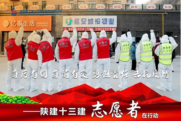 陜建十三建集團(tuán)黨員先鋒隊(duì)和青年突擊隊(duì)組成的志愿者