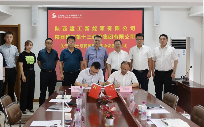 6月26日,集團與陜建新能源公司舉行混凝土塔筒項目簽約儀式。陜建新能源公司董事長李建飛,集團黨委書記、董事長卜國平致辭并鑒簽。陜建新能源公司副總經(jīng)理劉偉程,集團總工程師、陜建(延安)新型建材公司董事長王弘起代表雙方簽約。